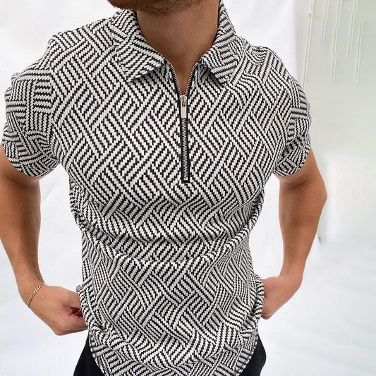 Herringbone Jacquard Zip-up Polo Shirt