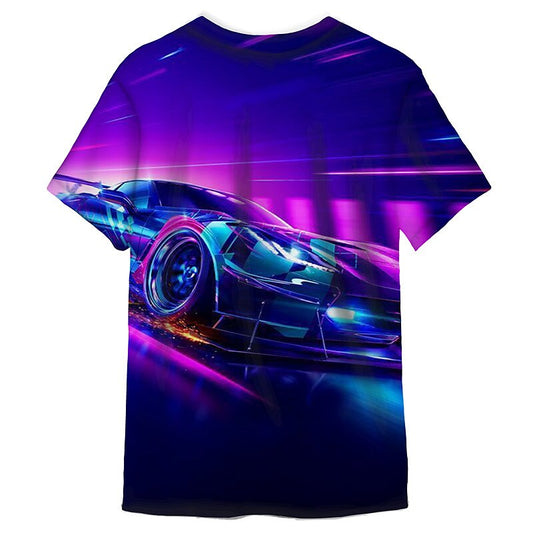 Men's T shirt 3D Print Graphic Car Crew Neck Daily Sports Print Short