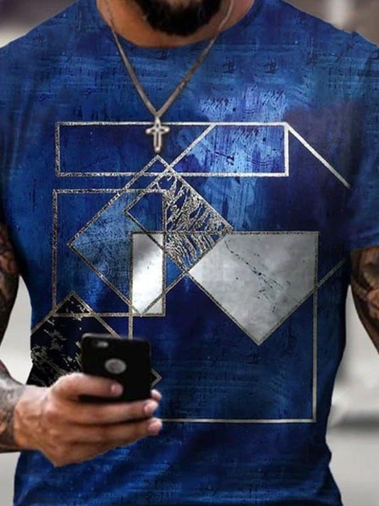 Mens Creative Geometric Navy Colour Art Print Short Sleeve Crew Neck T-Shirt