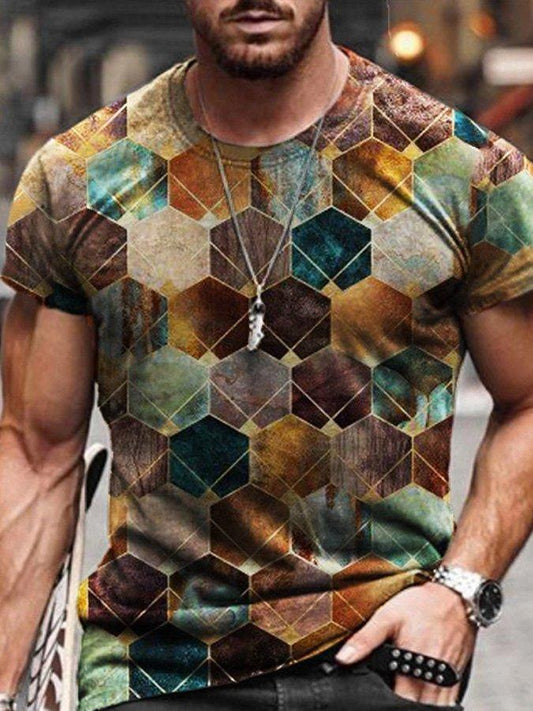 Men's 3D Print Graphic Geometric Crack Plus Size Short Sleeve Casual T-Shirts