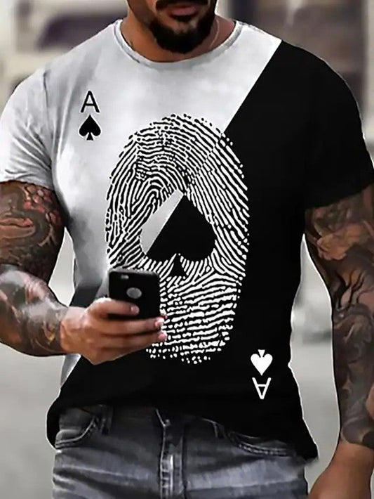 Men 3D Tees Casual Round Neck Short Sleeve Playing Cards Printing