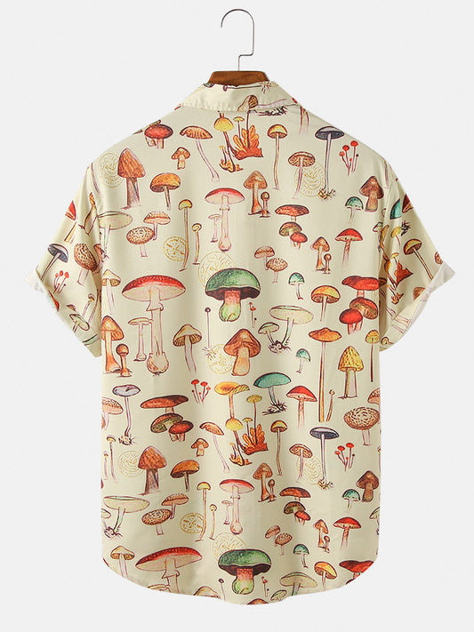 Mens Colorful Element Mushroom Pattern Print Loose Light Short Sleeve Shirts