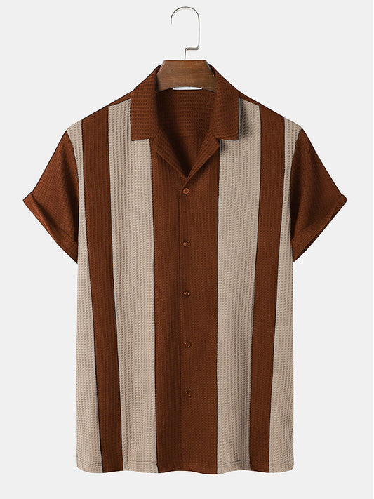 Mens Casual Breathable Striped Color Block Short Sleeve Shirts