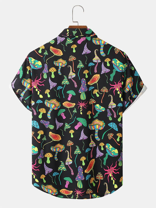 Mens Colorful Mushroom Print Button Up Street Short Sleeve Shirts