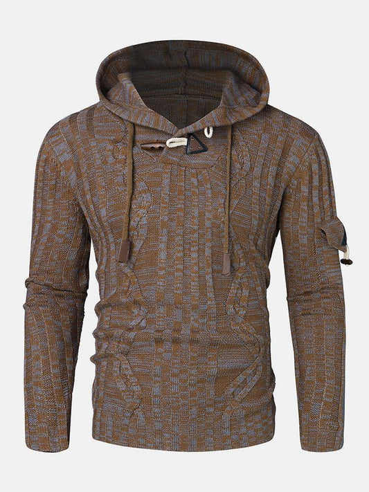 Mens Cable Knitted Toggle Front Warm Hooded Sweaters