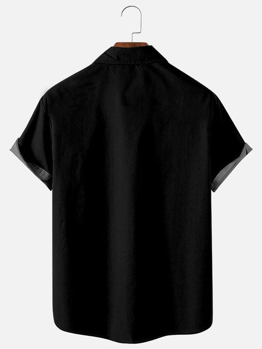 Mens 100% Cotton Leaf Printed Chest Pocket Turn Down Collar Short Sleeve Shirts