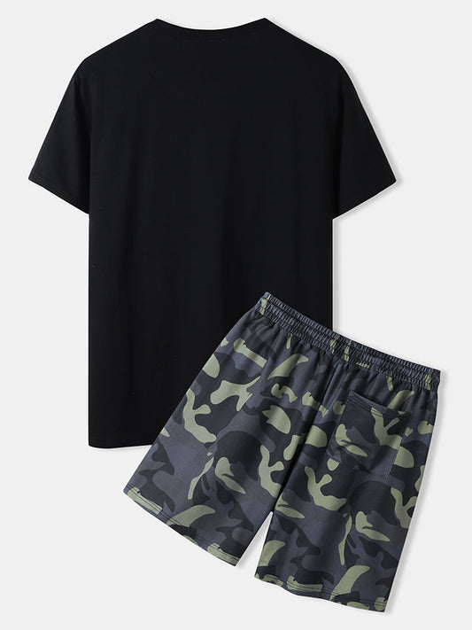 Mens Camo & Patchwork Print Breathable Casual Two Pieces Suits SKUF52008