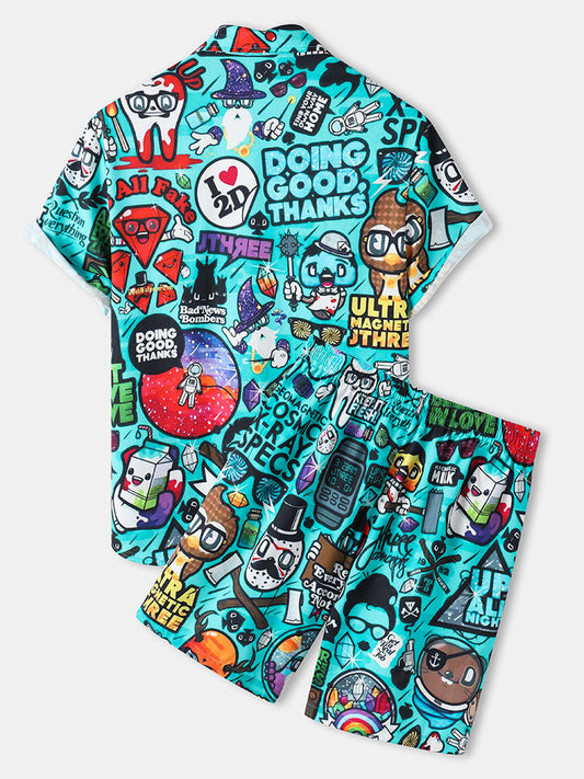 Mens Allover Funny Cartoon Print Loose Casual Two Pieces Outfits