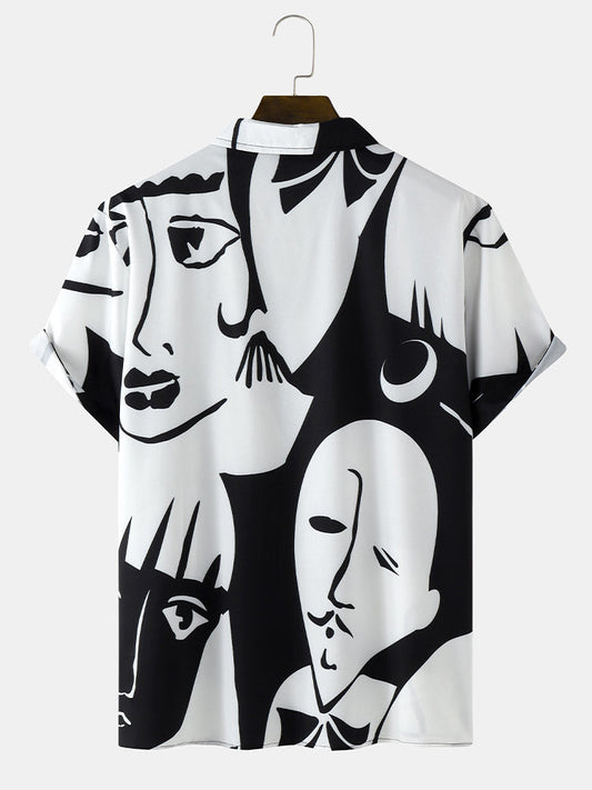 Mens Abstract Face All Over Print Street Short Sleeve Shirts