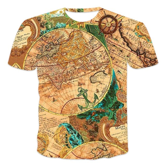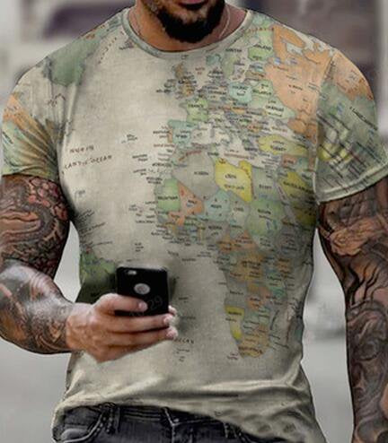 Street map pattern men's T-shirt retro trend new clothing VersatileStreet map pattern men's T-shirt retro trend new clothing Versatile