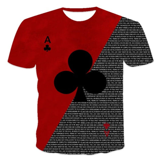 Men 3D Tees Casual Round Neck Short Sleeve Playing Cards Printing