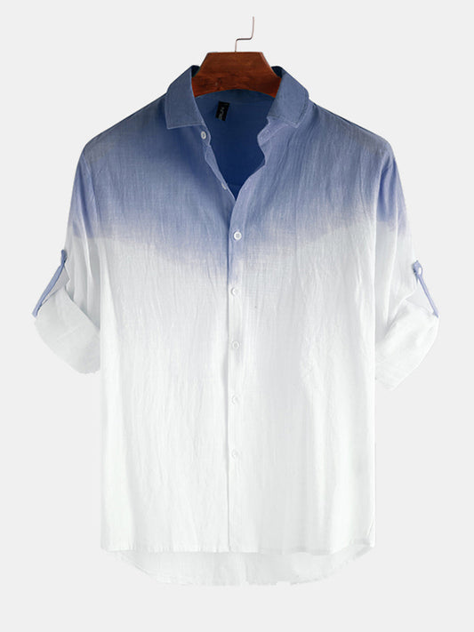 Men Cotton Gradient Printing Casual Long Sleeve Shirt