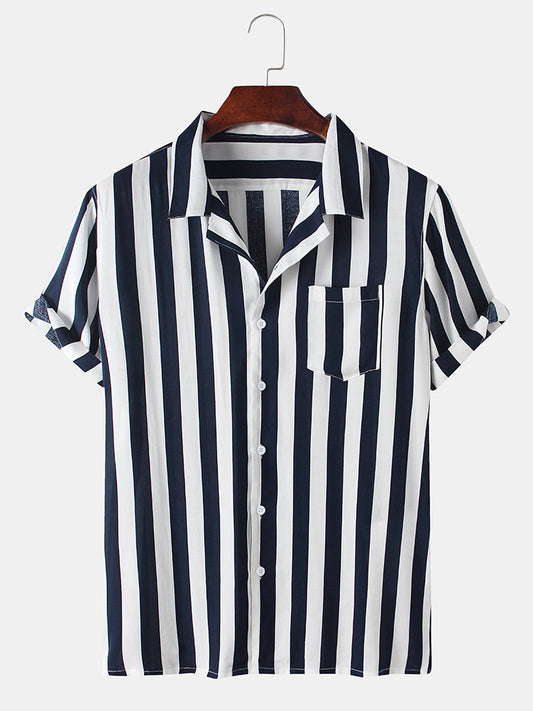 Men Basic Striped Revere Collar Casual Shirt SKUF24335