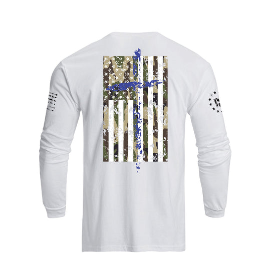Men's 100% Cotton Patriotic American Flag Camouflage Cross Graphic Midweight Long Sleeve T-shirts