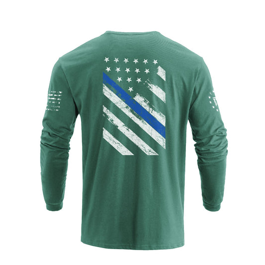 Men's 100% Cotton Blue Line American Flag Graphic Round Neck Long Sleeve T-Shirts