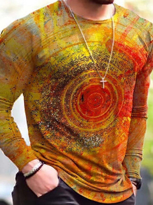 Men's Abstract Sun Painting Print Long Sleeve T-shirt