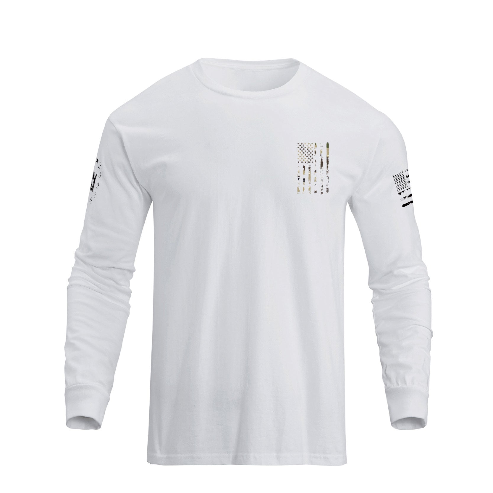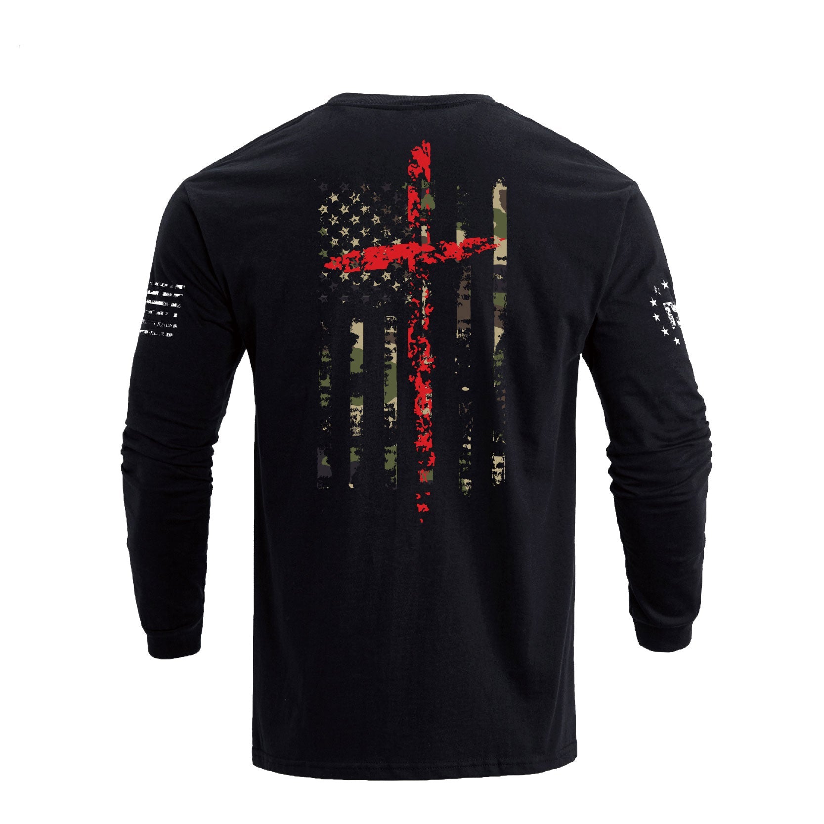 Men's 100% Cotton Patriotic American Flag Camouflage Cross Graphic Midweight Long Sleeve T-shirts