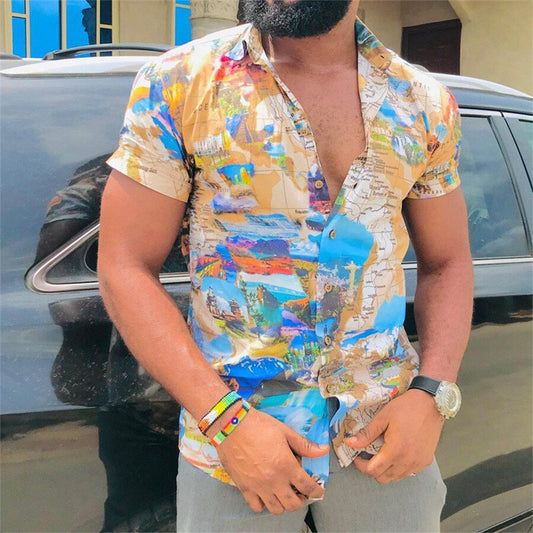 Men's Casual Lapel Short Sleeve Shirt T-Shirt Top