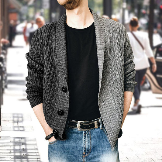 Men's Casual Long-Sleeved Knitted Cardigan Sweater Jacket