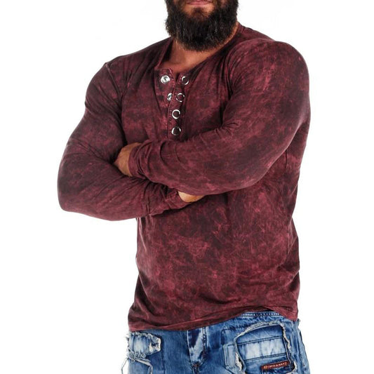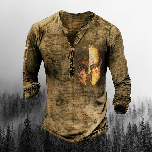 Men'S Outdoor Tactical Patriot Retro Long Sleeve Henry Collar Top