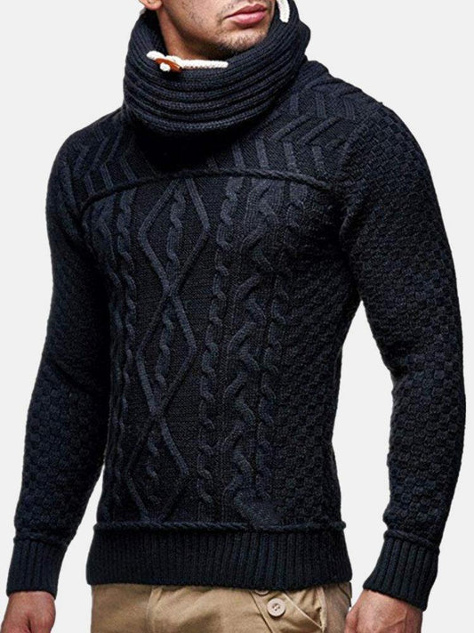 Mens Turtleneck Cable Warm Long Sleeve Knitted Sweaters