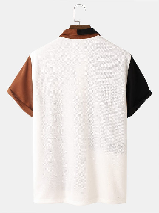 Mens Tricolor Knitted Lapel Short Sleeve Regular Hem Shirt SKUH83526
