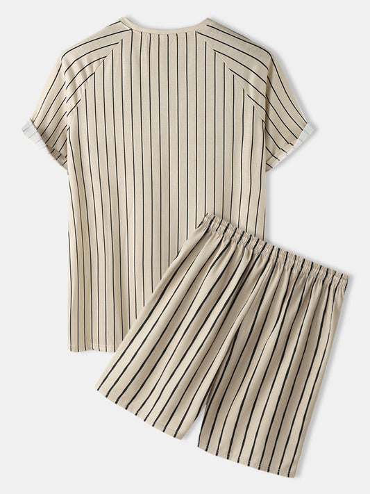 Mens Stripe K Poker Print Raglan Sleeve Casual Two Pieces Outfits