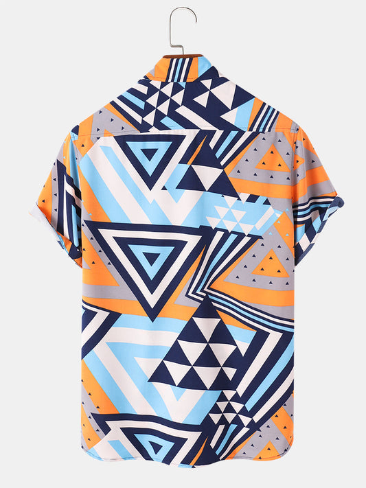 Mens Triangle All Over Print Lapel Street Short Sleeve Shirts