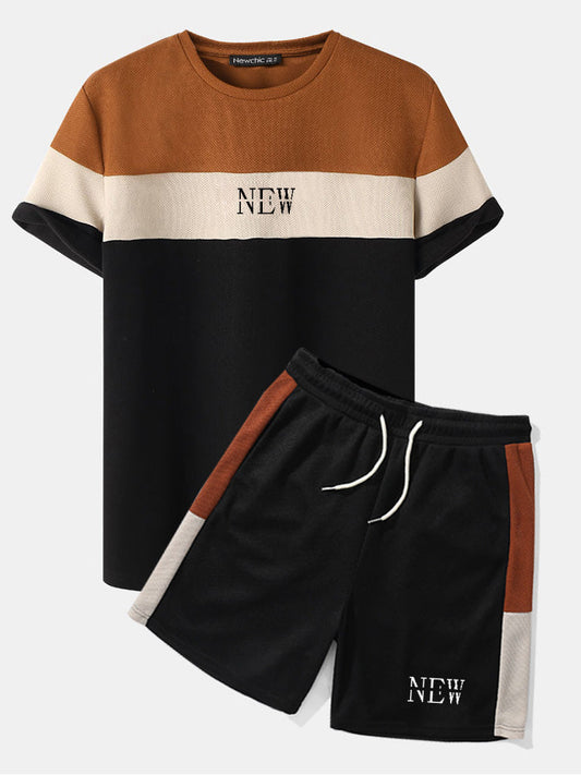 Preppy Mens Patchwork Letter Color Crew Neck Short Sleeve Two Pieces Outfits