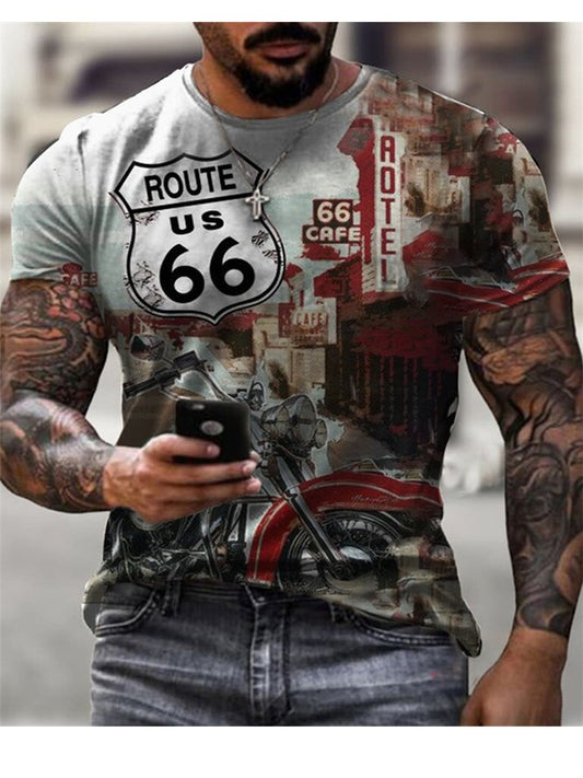Route 66 Pattern Mens Outdoor Retro Long-Sleeved Hoodie